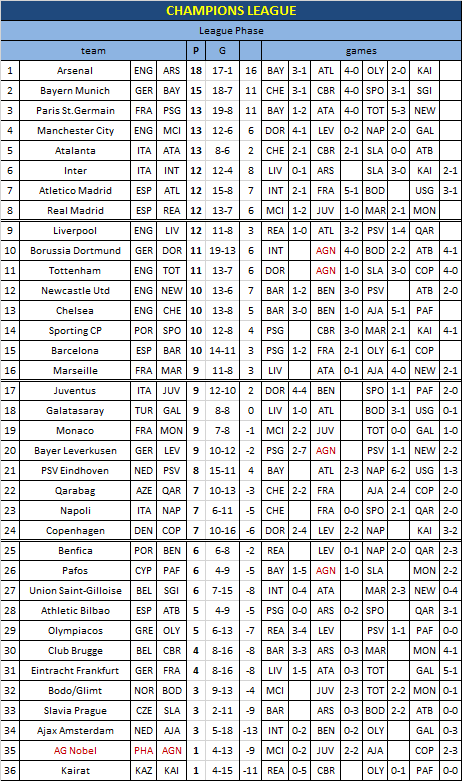 25 Nov: Bor. Dortmund (GER) - AG Nobel 4-0