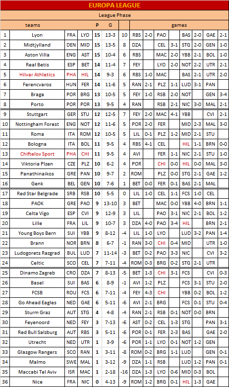 27 Nov: Viktoria Plzen (CZE) - Hilvar Athletics 0-0